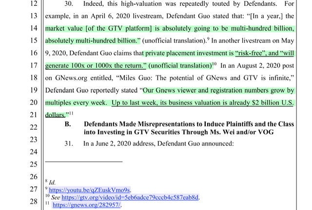 It’s also notable that one of Guo’s YouTube videos is now “private” as noted on page 7 of the class action complaint -see footnote # 9