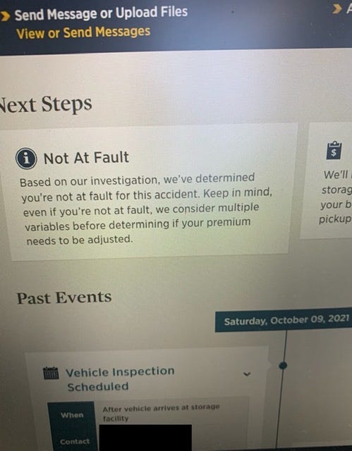 Yesterday USAA called to inform me that I wasn’t at fault. That the other driver admitted they had improperly merged into my lane and caused the collision. This particular intrastate is notoriously horrid. Less than 2 hours after my accident a six car pile up occurred at the same location. My car was totaled. But again this is why we have insurance and material things can be replaced.