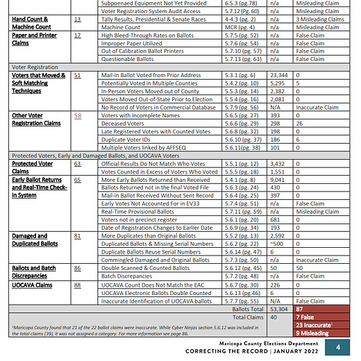 To that end on January 5, 2022 @MaricopaVote issued a blistering report. And as the tweet below indicates, the Report refuted each and every claim made by Cyber Ninjas and by proxy Donald Trump. In total Cyber Ninjas made eighty yes 80 false claims in their “audit” —you can read more here. By contrast Cyber Ninjas’ failure to provide concrete evidence of fraud, coupled with their failure to comply with multiple court orders. Cyber Ninjas only has themselves to blame.