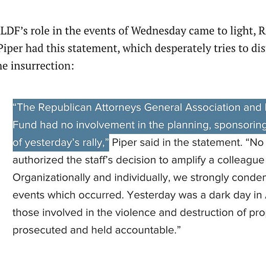 So this is where I am - unless anyone can share data or facts that the heavy handed and disproportionate arrest from Summer 2020 versus the deadly January 6, 2021 insurrection is some how not worth talking about - here’s one sure way to make me “move on” arrest the Orange Hate Goblin, Mini-Orange Hate Goblin, Rudy Giuliani, Mo Brooks, Ali Alexander, Roger Stone, Alex Jones, the Republican Attorneys General Association and their progeny Rule of Law Defense Fund - remember their Robo-Call “at 1PM we will march to the Capitol”