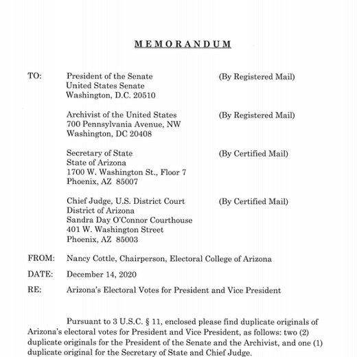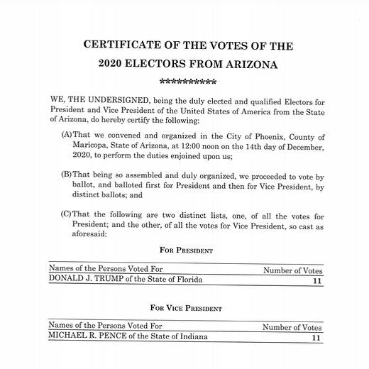 The authentic State certificates, can be viewed via the National Archives website. As you’ll note the documents on the National Archives correctly/factually state (then presidential candidate) Joe Biden was the victor in the same seven battleground states that Trump and his loyalist are trying to “decertify” which in of itself is deeply unsettling. Obviously on January 6, 2021 Trump’s Domestic Terrorist sought to overthrow our Government and to prevent the Constitutionally mandated (see 12th Amendment) Certification of the Electoral College Ballots - which reads in part: