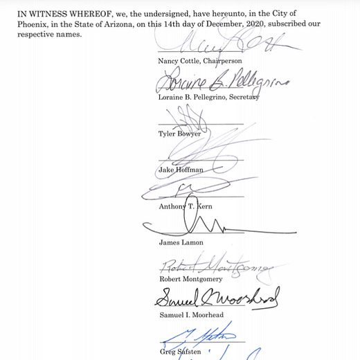 Also see previous reporting on the Arizona “fraud-Audit” (and no I haven’t checked to see if Cyber Ninjas really did file for Bankruptcy) Additionally you can read the December 7, 2020 “Arizona Trump-Fake Electors” document, found here. Additionally on December 22, 2020 Arizona’s Secretary of State sent this 2 page letter to the Sovereign Citizens of the State of Arizona for improperly using the State’s Official seal. I’d recommend that you read Politico’s January 10, 2022 exhaustive reporting found here