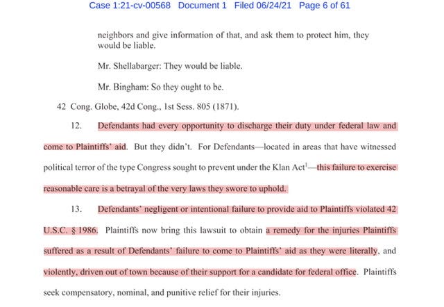 For now put a pin in §1986 - I’ll explain how lawsuit #2 heavily relies on this..